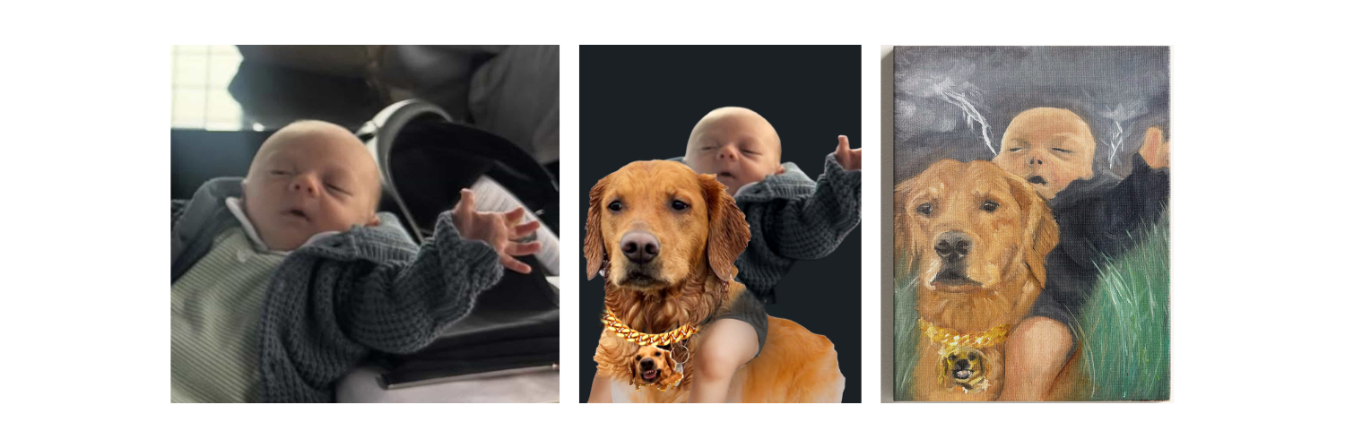 — Owner of Abby, 2021“I wanted my nephew Grant riding my dog Trudy. I only had one photo of Grant in his car seat and the photo of Trudy. He instantly knew off a quick conversation what I was hoping for. Showed me every step of the way from rough sketches to final approved concept. Not to mention the medallion of evil Trudy at such a small scale.”